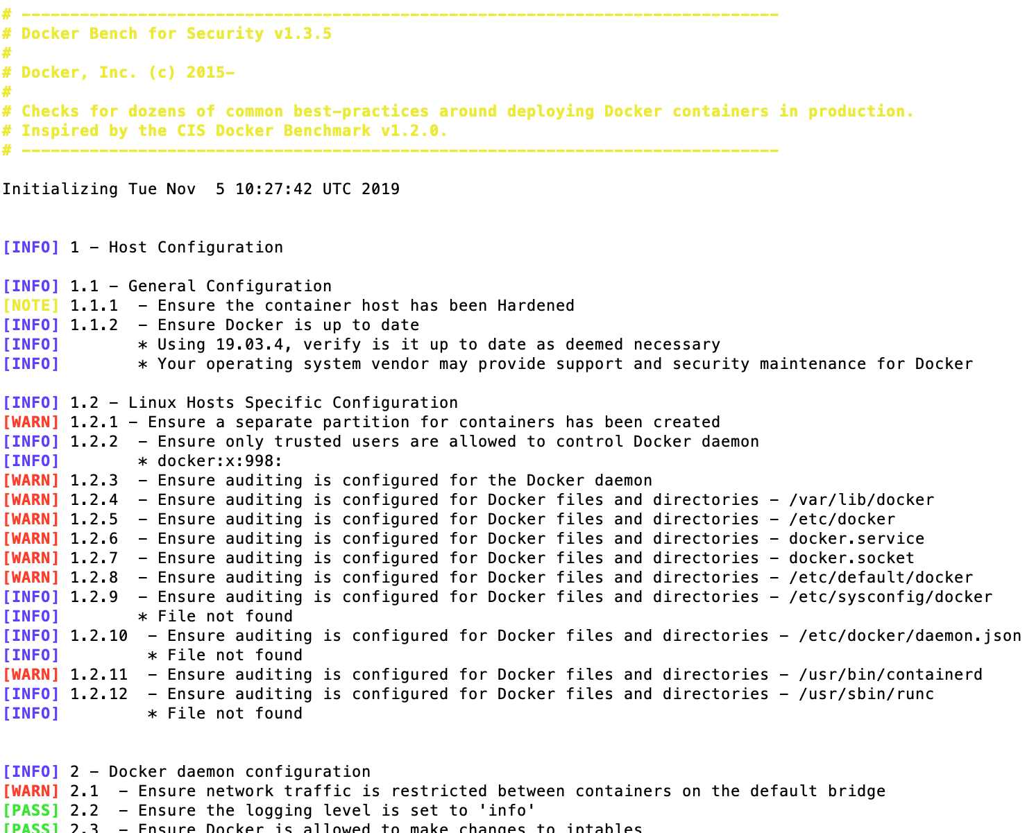 The detailed steps to execute the docker bench security tool is mentioned in the github. This is a free and opensource utility (Apache 2.0 License). This is a very easy to use utility with a large number of automated tests.