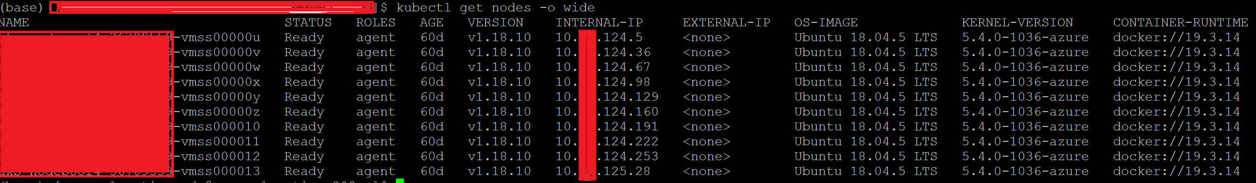 The above command will list all the nodes that are part of the cluster and also its status. The screenshot of sample response is given below. The following screenshot is the details of a 10 node Azure Kubernetes cluster ( AKS ) .