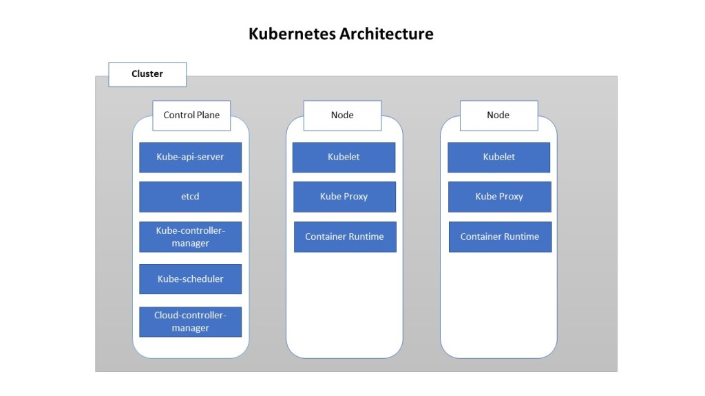 This is the heart of the Kubernetes cluster. This node stores the information of the entire cluster. Manages and schedules the deployments happening across the cluster. There can be one or more control planes in a Kubernetes cluster. More than one control planes are configured for high availability and failover.