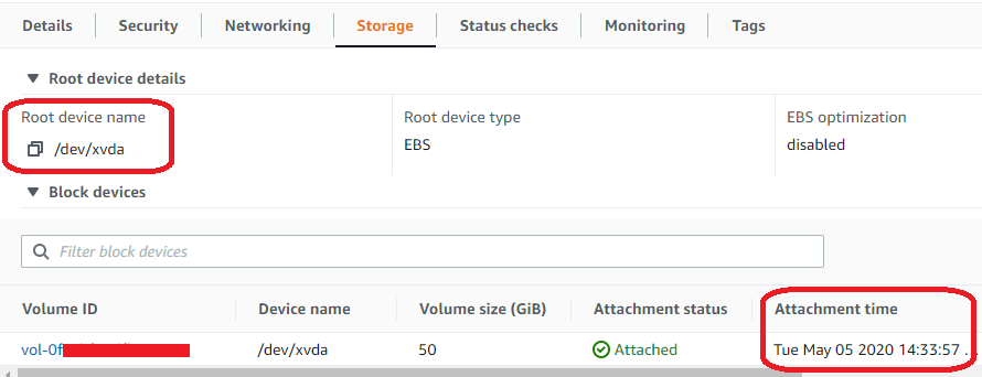 The persistent volume in the EC2 instance is Elastic Block Storage (EBS). This storage gets provisioned and attached to the EC2 instance at the time of creation of the EC2 instance. The persistent volume will be running even if the instance is in the stopped. If you check the details of the persistent volume, we can see a parameter called Attachment Time. We can use this parameter to identify the creation time of the EC2 instance.